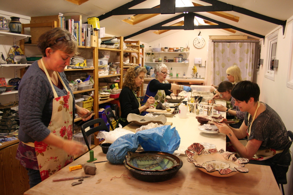 Pottery Classes and Workshops Make unique ceramics, art and sculpture at pottery studio, Clay with Carole in Hitchin, Hertfordshire. Pottery classes are small, friendly and ideal for beginners and more experienced ceramic artists. Learn hand building decorating and glazing in small friendly groups. Earthenware and stoneware ceramics are fired in an electric kiln to a high standard. Tranquil, light pottery studio set in a pretty garden. All equipment provided. Contact [email protected] run morning, afternoon and evening Tues-Thurs. contact Carole for class times. £8 taster class including clay. £72 for 6 week block of classes including 1lb clay. Courses can be joined any time-: pay fees pro-rata
