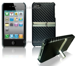 Leather Carbon Fiber Case With Chrome Stand Black For Apple iPhone 42010-11-20