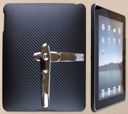Leather Carbon Fiber Case With Dual Chrome Stand Black For Apple iPad2010-11-20