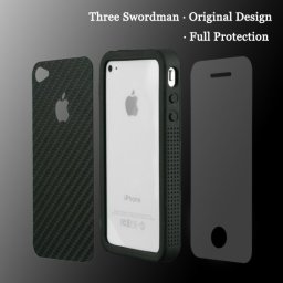 3 in 1 Case Carbon Fiber Back Black+Bumper+Front Screen Protector For iPhone 42010-11-20